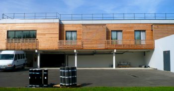 Panneaux KLH en murs et support de toiture terrasse, en partie végétalisée.