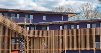 Construction d’un hôtel avec une faible empreinte écologique d’une surface totale de 1 600 m² avec 108 chambres en modules de panneaux CLT-KLH préfabriqués.